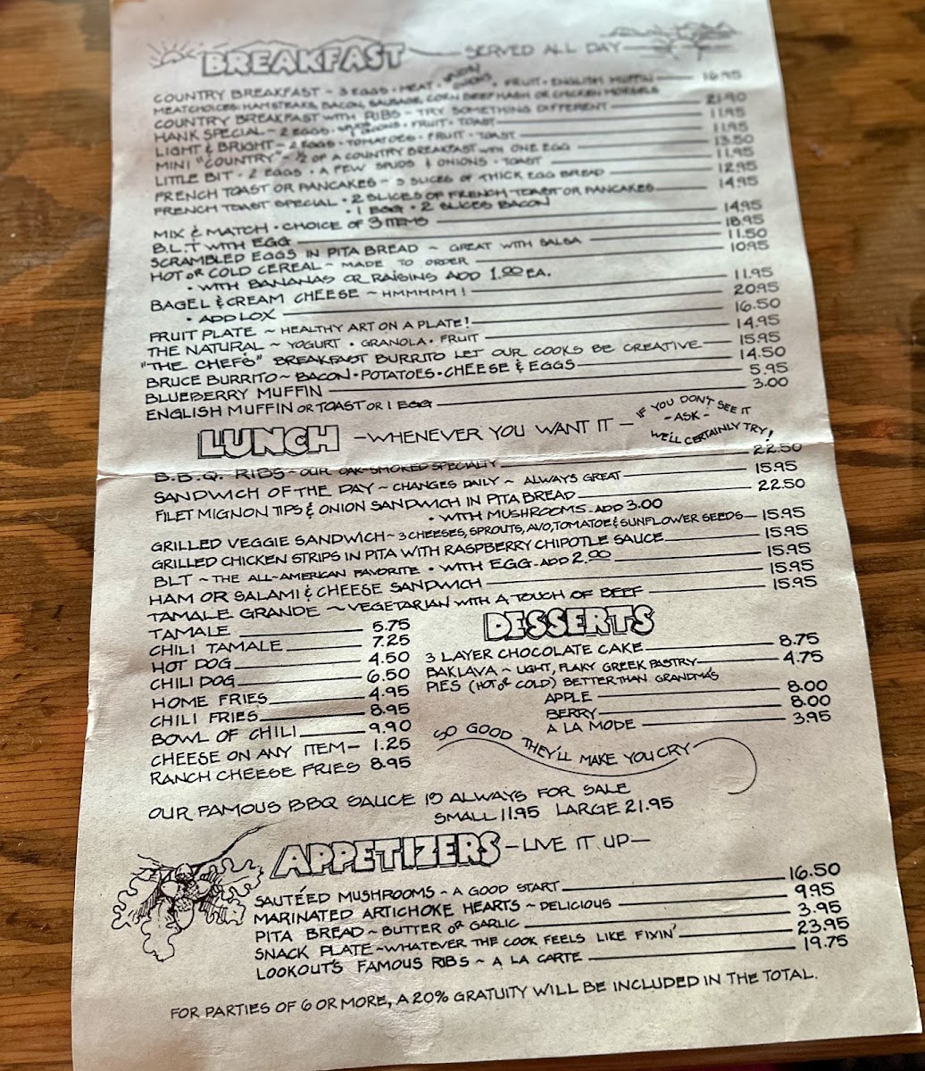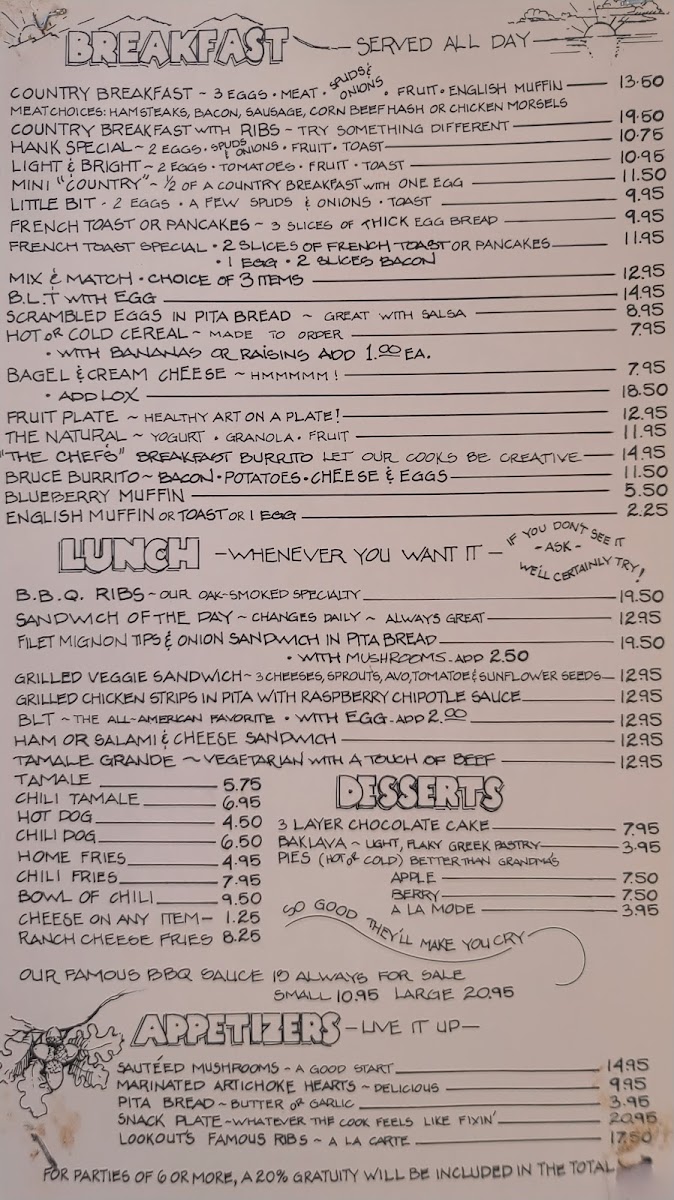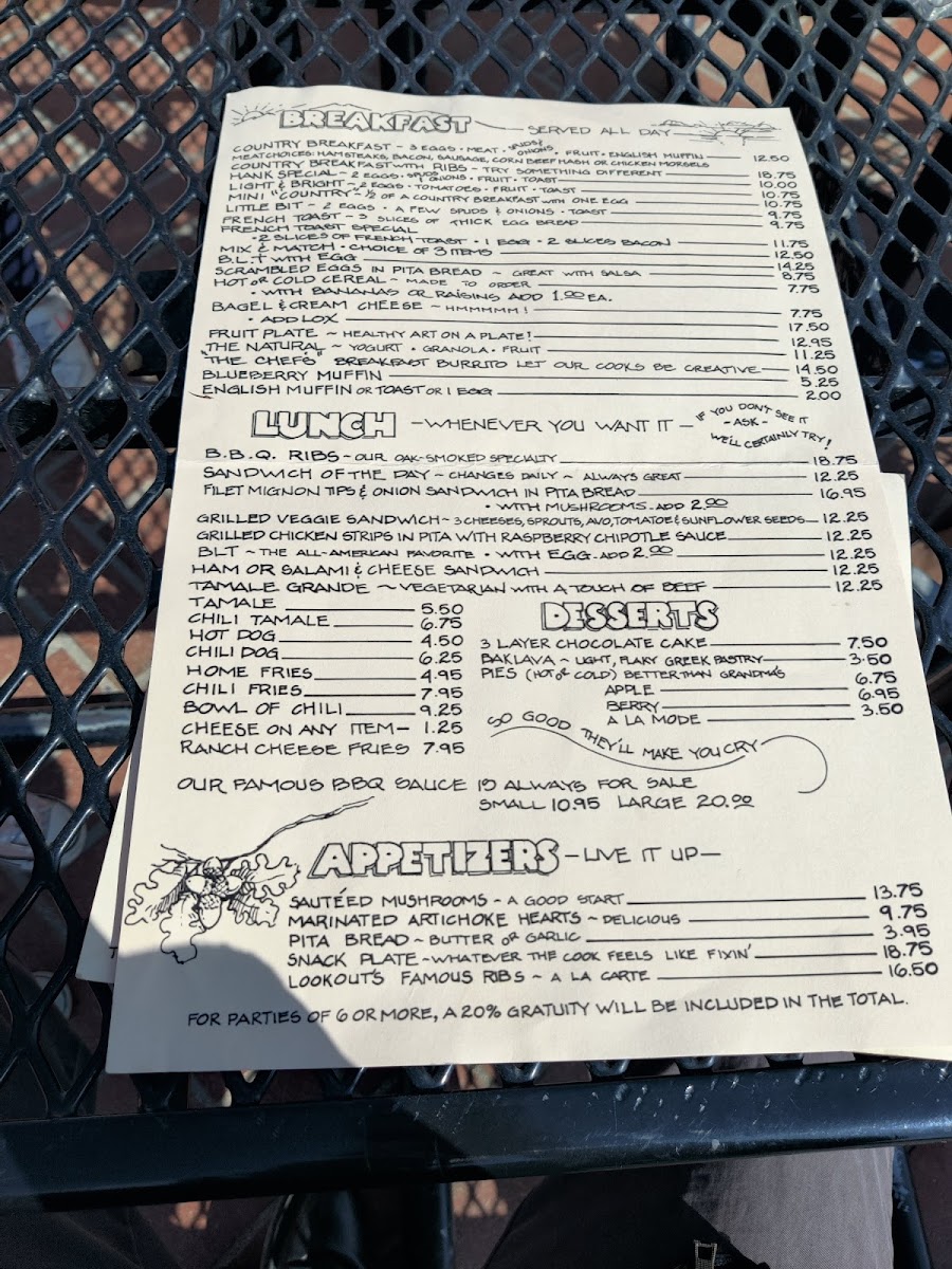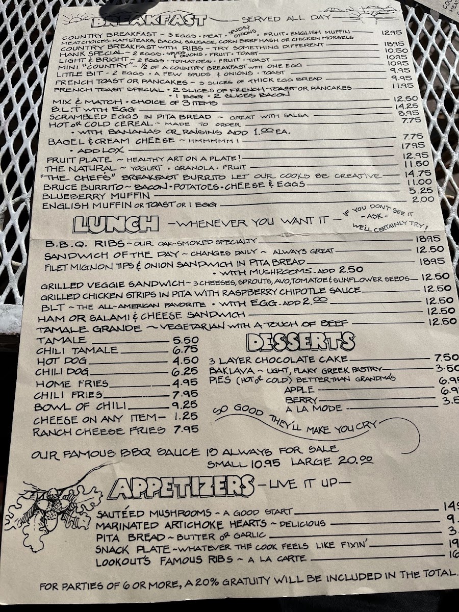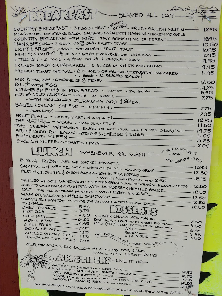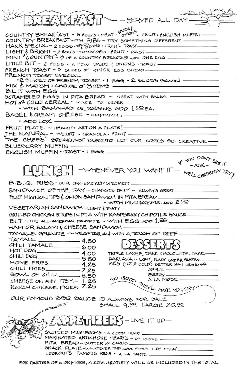 3 eggs, meat, spuds & onions, fruit, English muffin